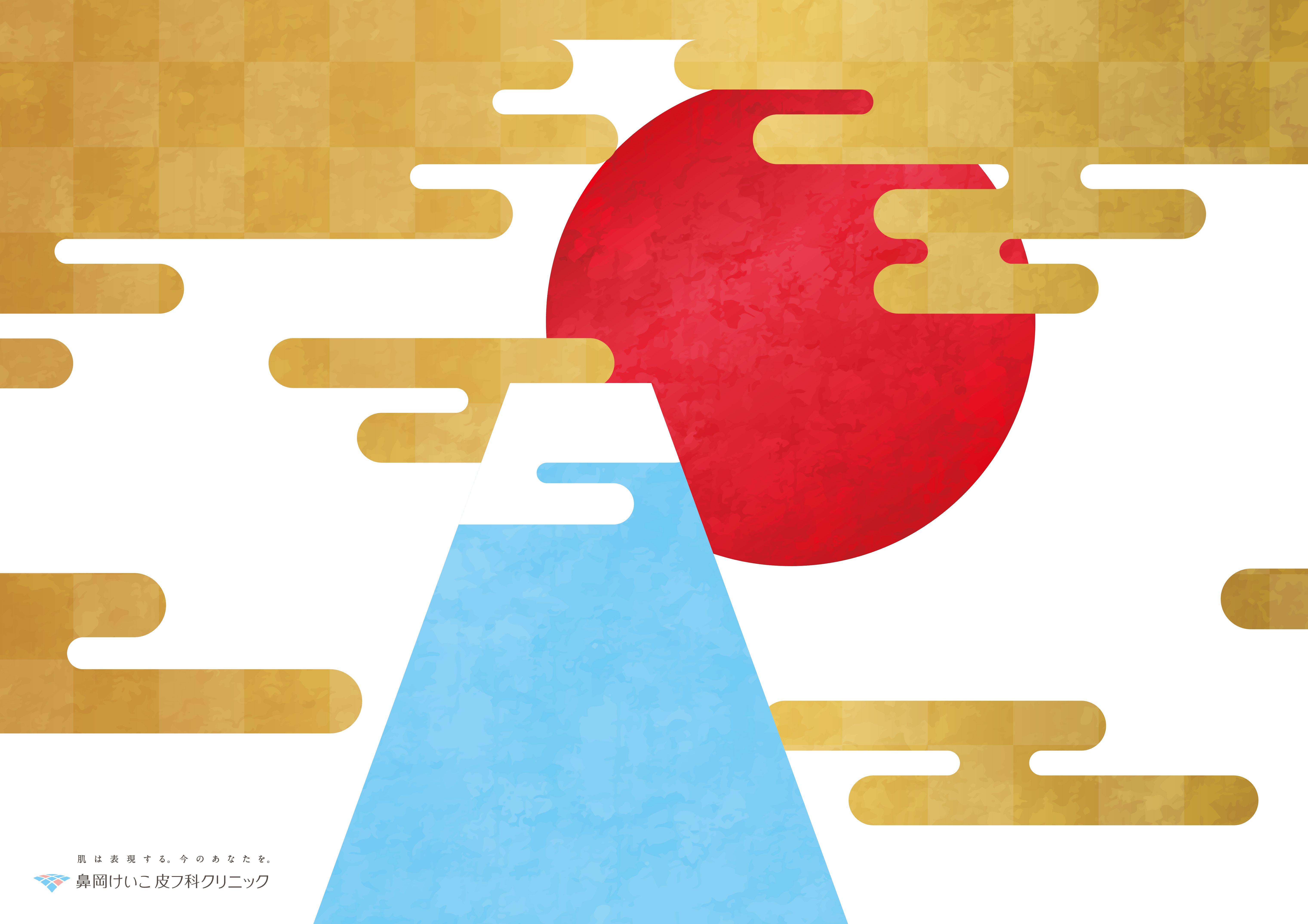 椿や日の出の赤が華やかなデザインに、院長としての新年の抱負を込めました。